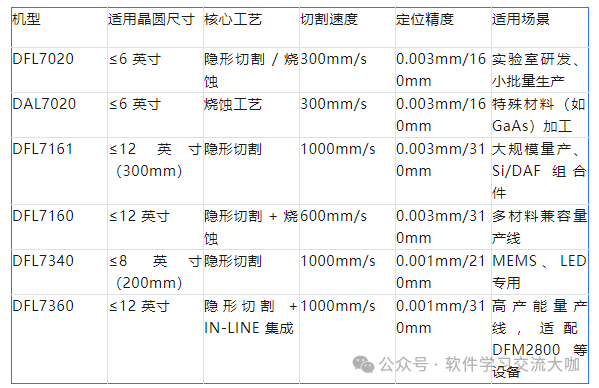 适用:SiC、GaAs、蓝宝石等难加工材料,以及 LED、功率器件的精细划片;