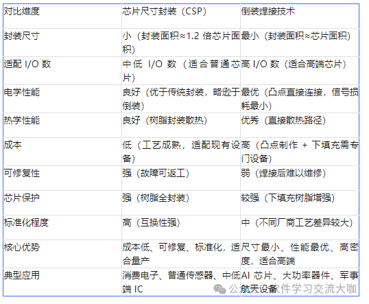 很多人纠结 “选 CSP 还是倒装焊接”,核心看需求 —— 是优先成本和可修复性,还是优先性能和高密度?一张表直接对比: