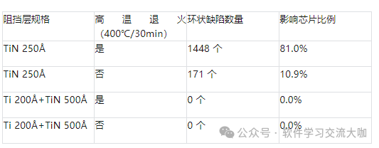 实操案例:某厂将阻挡层增厚后,环状缺陷率从 10.9% 降至 0,金属互连线寿命延长 3 倍,成品率提升 12%!