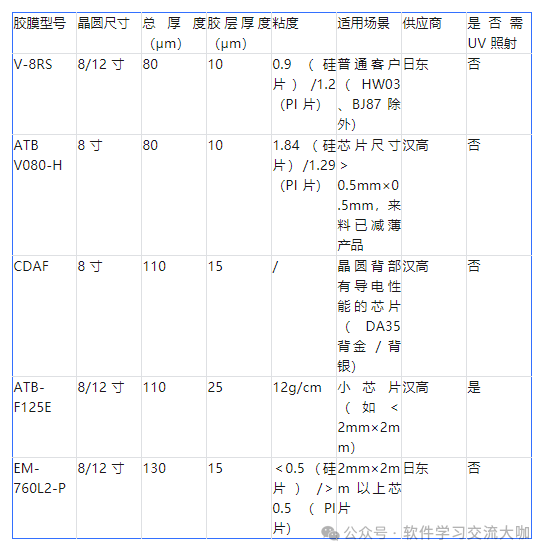 避坑提醒:表面有聚酰亚胺(PI)的晶圆要选专用胶膜(如 BT-150P-LC),普通胶膜粘性不足,无法有效固定。