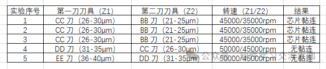 再搭配 “第一刀比第二刀厚 5μm” 的组合,就能 100% 避免黏连;而用 BB 刀(≤25μm),不管怎么调转速都没用!