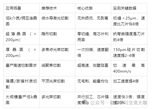 刀片切割已达瓶颈,激光切割是未来主流!核心选对技术:普通场景用传统激光,低k/超薄用新型激光(微水导/隐形),