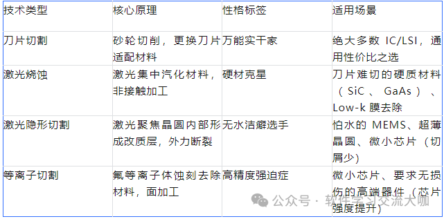 DISCO 搭建了四种核心切割技术,覆盖从通用到高端的全场景需求,像 “四大天王” 各管一摊: