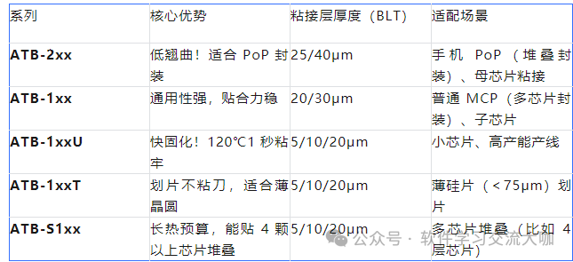 举个例子:做手机 PoP 封装选 ATB-2xx,翘曲率比其他膜低 30%;