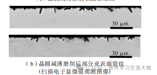 更隐蔽的是 "亚表面裂纹":磨削后芯片表面下会产生 1~2μm 的微小裂纹,部分甚至深达 10μm(如图 (b)),