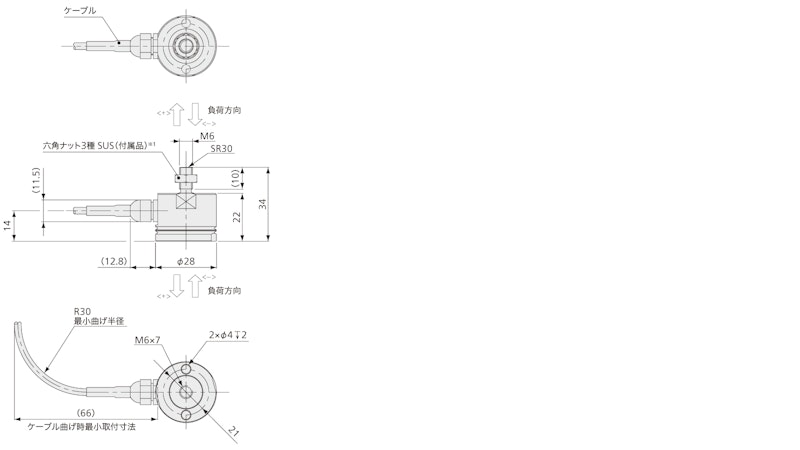 *1 测量拉伸载荷时应按需使用六角螺母。 有关安装方法的更多信息,请参阅说明书。